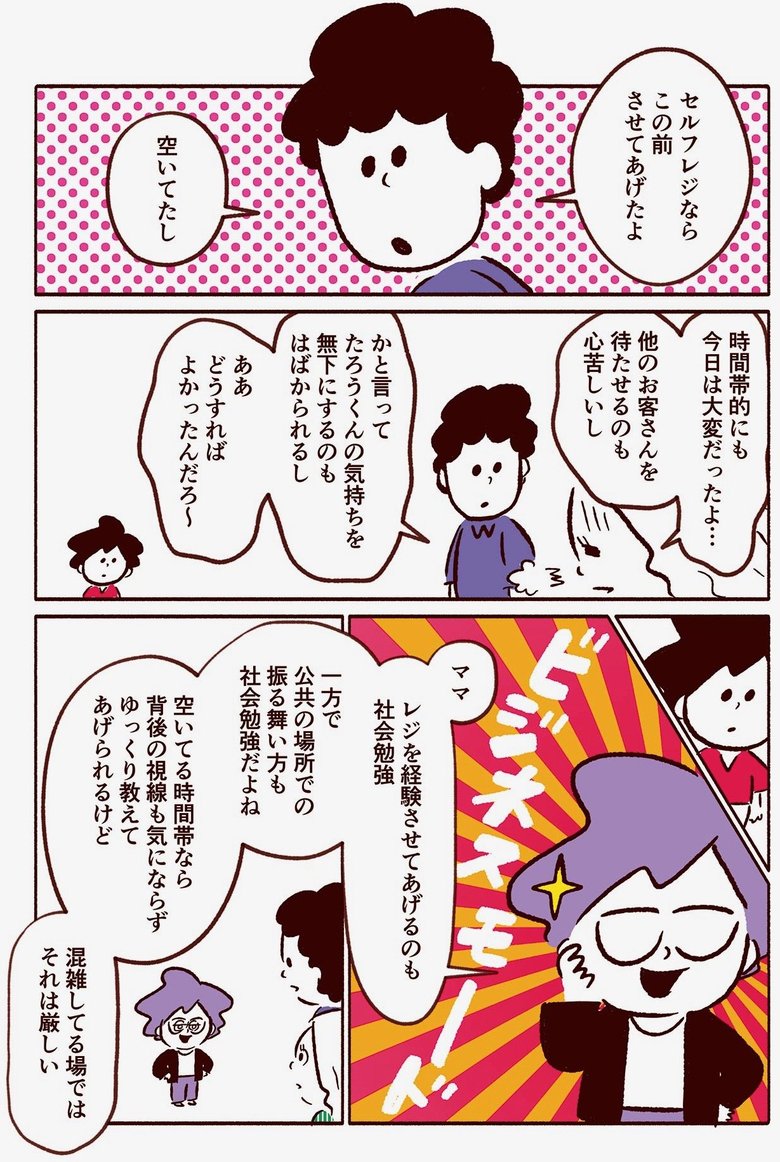 連載トップへ戻る セルフレジで泣き叫ぶ息子「私はどうすればよかったの!!」 4コマ・漫画 2022.08.19 うちの息子は、なんと「ビジネス系3歳児」だった⁉︎令和時代の家族についてのリサーチをもとに浮き彫りになった家族の課題に、たろうくんがビシッと切りこんでいきます。新しい家族のカタチ"共働きスマート家族"、その行方とは── 。 漫画を読む 第130話「セルフレジで泣き叫ぶ息子『私はどうすればよかったの!!』」(後編) 作/児島衣里 この記事の写真をすべて見る(2枚)