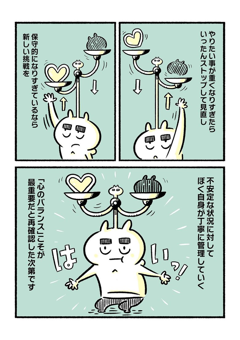 連載トップへ戻る 職場復帰後の人間関係やキャリアの不安…解決の道筋とは? ミヨシ 4コマ・漫画 2022.09.08 「仕事をがんばりたい」という前向きな気持ちが、ときに諸刃の剣になることも少なくありません。それでも勇気をもって踏み出した1歩は、何歩下がったって、きっと前に進んでいるはず──。「うつやすみ」を経て職場復帰を果たしたミヨシさんが、日常にある小さな変化や気づきを描きます。 漫画を読む 【第23話】職場復帰後の人間関係やキャリアの不安…解決の道筋とは? 作/ミヨシ この記事の写真をすべて見る(4枚)