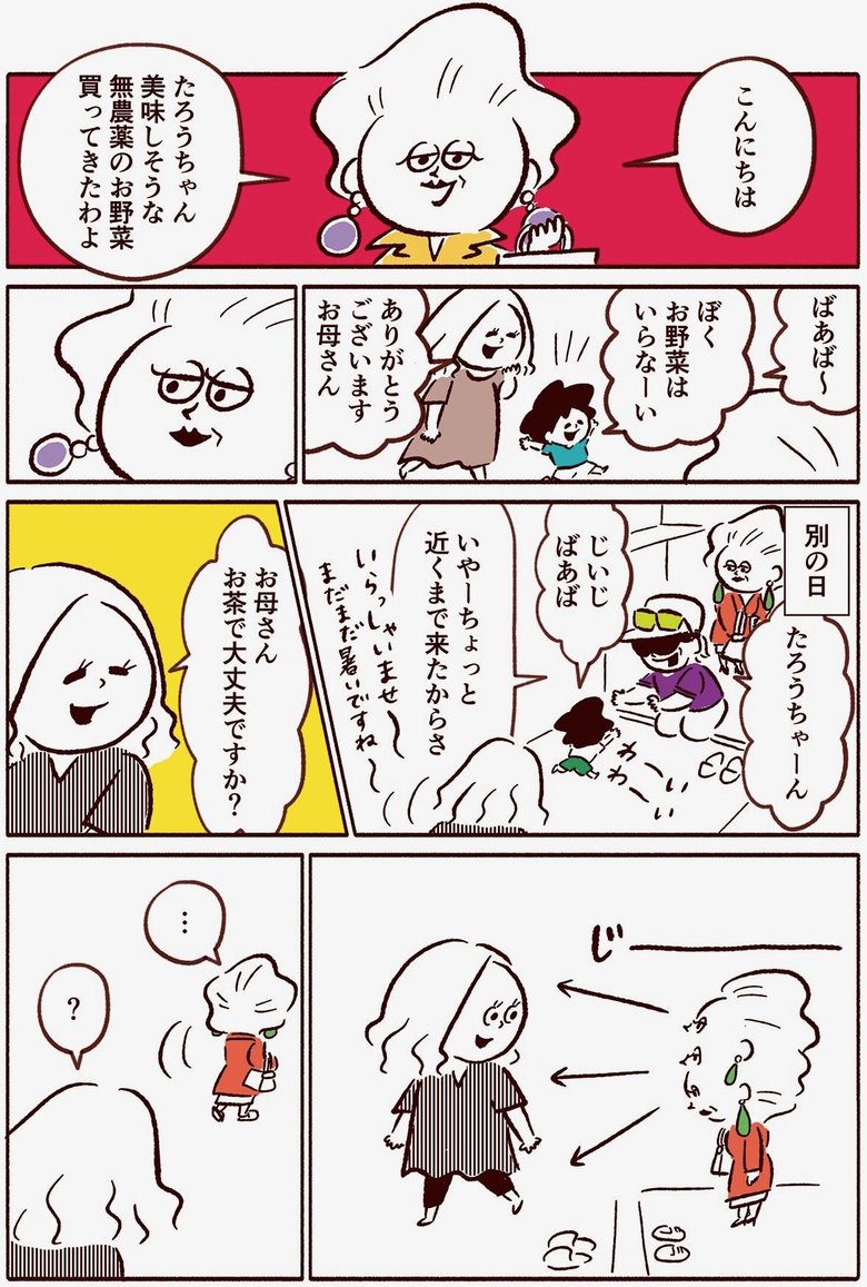 連載トップへ戻る 姑からの不穏な視線を感じて…「どこ見てるの?」 4コマ・漫画 2022.09.05 うちの息子は、なんと「ビジネス系3歳児」だった⁉︎令和時代の家族についてのリサーチをもとに浮き彫りになった家族の課題に、たろうくんがビシッと切りこんでいきます。新しい家族のカタチ"共働きスマート家族"、その行方とは── 。 漫画を読む 第135話「姑からの不穏な視線を感じて…『どこ見てるの?』」(前編) 作/児島衣里 この記事の写真をすべて見る(2枚)