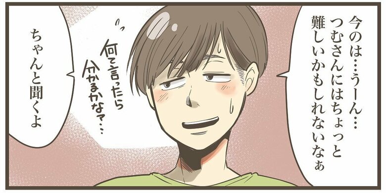 なかには説明が難しいこともあり、ミロチさんが「今のは…つむさんには難しいかもしれないなぁ」とこぼすと、つむちゃんは…。