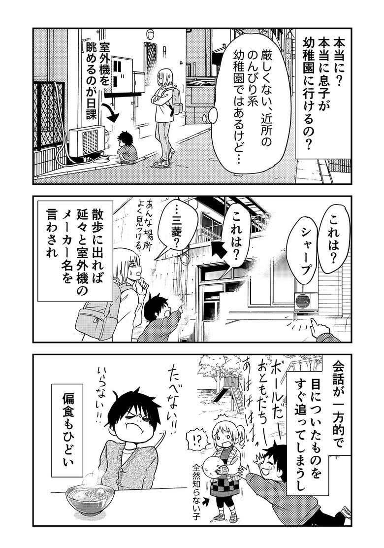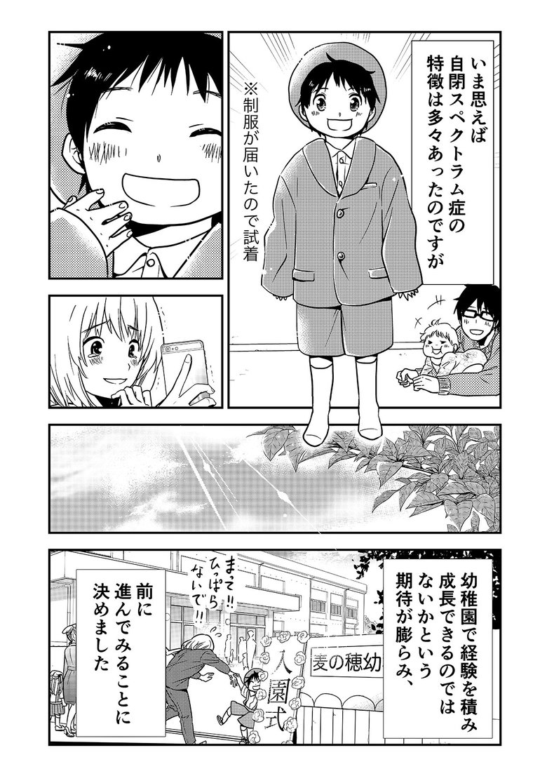 発達の不安が拭えない息子くんがまさかの幼稚園合格!信じられない思いもありつつ、制服姿に思わず感動…!幼稚園での経験が息子くんをきっと変えてくれる…そう願わずにはいられない愛田さんなのでした。