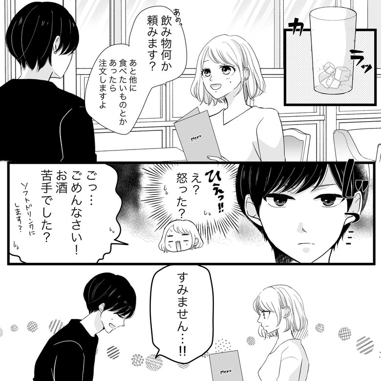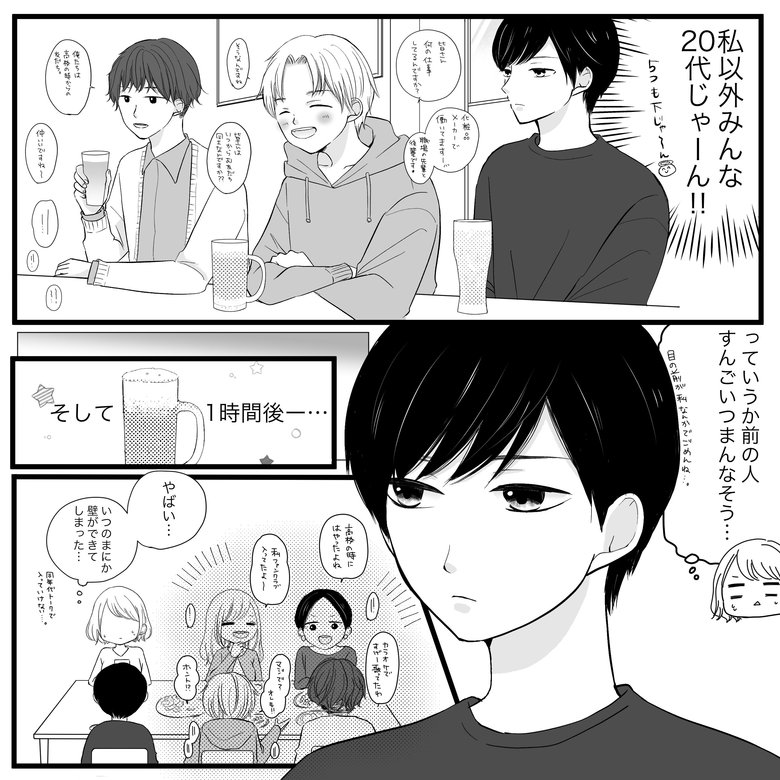 思い切って合コンに参加してけれど、盛り上がりにはついていけず対面の相手もそっけない態度で気まずい雰囲気に。もっと若くて可愛い子だったら違うのかな、とつい自虐的なことを思ってしまうのでした。