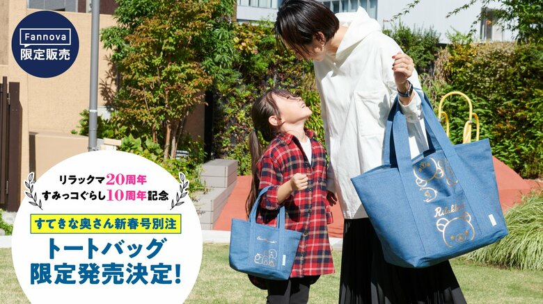 すてきな奥さん新春号の発売日がプロジェクトのスタートです。ほかでは決して買えない、大容量&キャラクター勢ぞろいの「リラックマBIGトートバッグ」に加え、セットで持つとさらにかわいい「すみっコぐらしminiトートバッグ」もご用意しました。