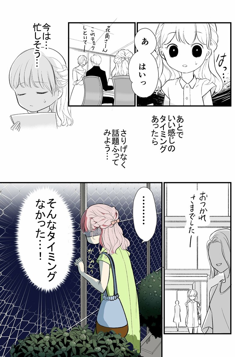 花角さんのことをもっと知りたいと、真似をして沈丁花を手に取ろうとするみどり。その瞬間、花角さんが背後から現れて──。突然の出来事に言葉を失うのでした。