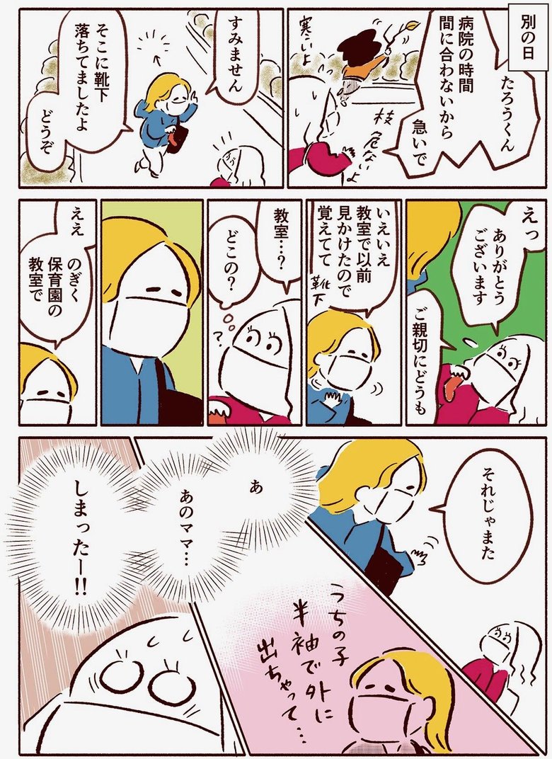 連載トップへ戻る 「やっちまった!!」同じ園のママの顔を忘れて気まずい空気 4コマ・漫画 2023.01.02 うちの息子は、なんと「ビジネス系3歳児」だった⁉︎令和時代の家族についてのリサーチをもとに浮き彫りになった家族の課題に、たろうくんがビシッと切りこんでいきます。新しい家族のカタチ"共働きスマート家族"、その行方とは── 。 漫画を読む 第152話 「やっちまった!!」同じ園のママの顔を忘れて気まずい空気