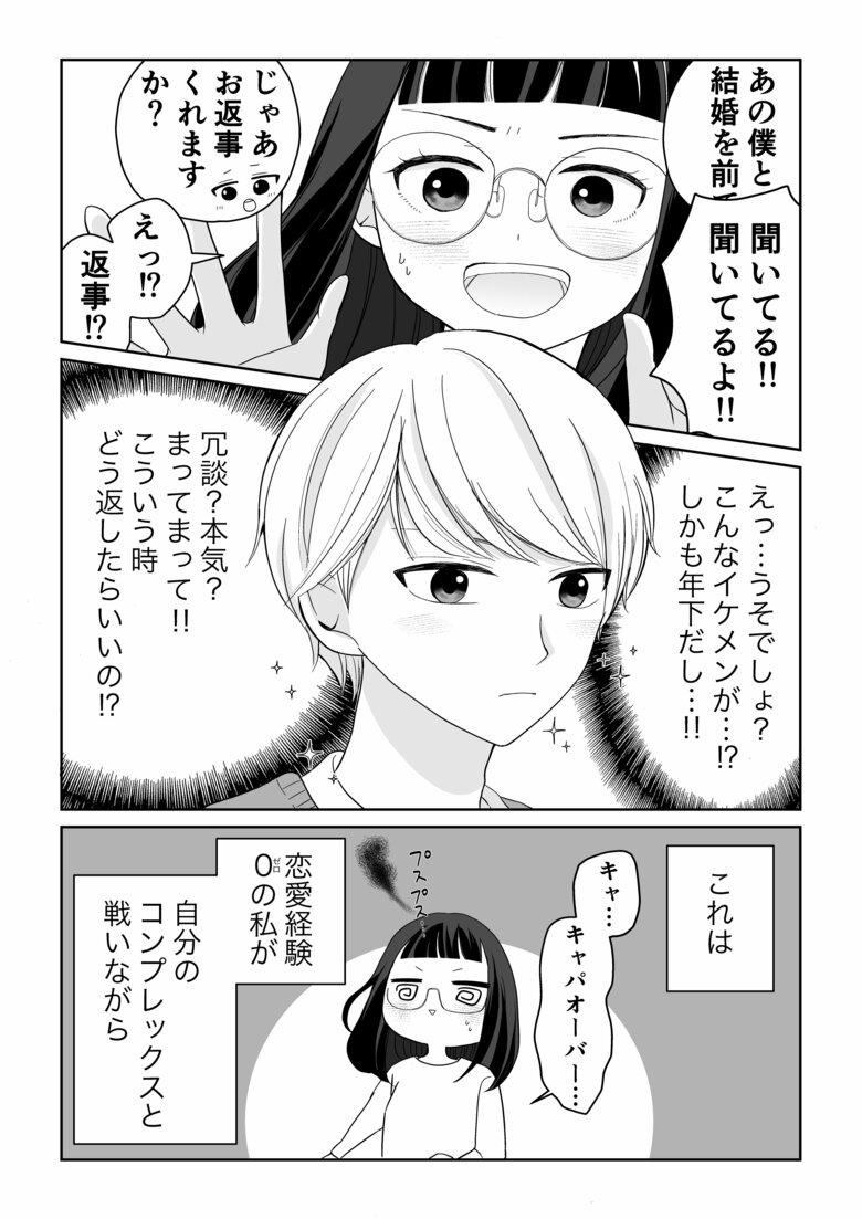 上京し8年間、漫画家を目指し職場と家を往復する日々を送っていた彼氏いない歴=年齢の実咲が年下イケメン男子からプロポーズ!?経験値ゼロから怒涛の恋愛が始まる予感です。