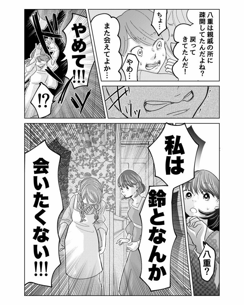 級友との再会を無邪気に喜ぶ鈴ですが、八重はそれを拒絶します。軍人の父を持ち、かつて鈴を「父親がいないから教育がなってない」とバカにした八重は、疎開後どんな日々を過ごしていたのでしょうか。