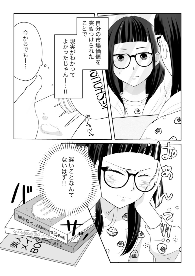 自分に似合うファッションもメイクもわからない!と、先輩との差を感じていると、男性側から「他の子も呼べない?」と言われてしまいます。私に魅力がないせいだ…と自分の市場価値を思い知らされました。そして、今からでも遅くないはずとまずは外見的な自分磨きを始めたのでした。