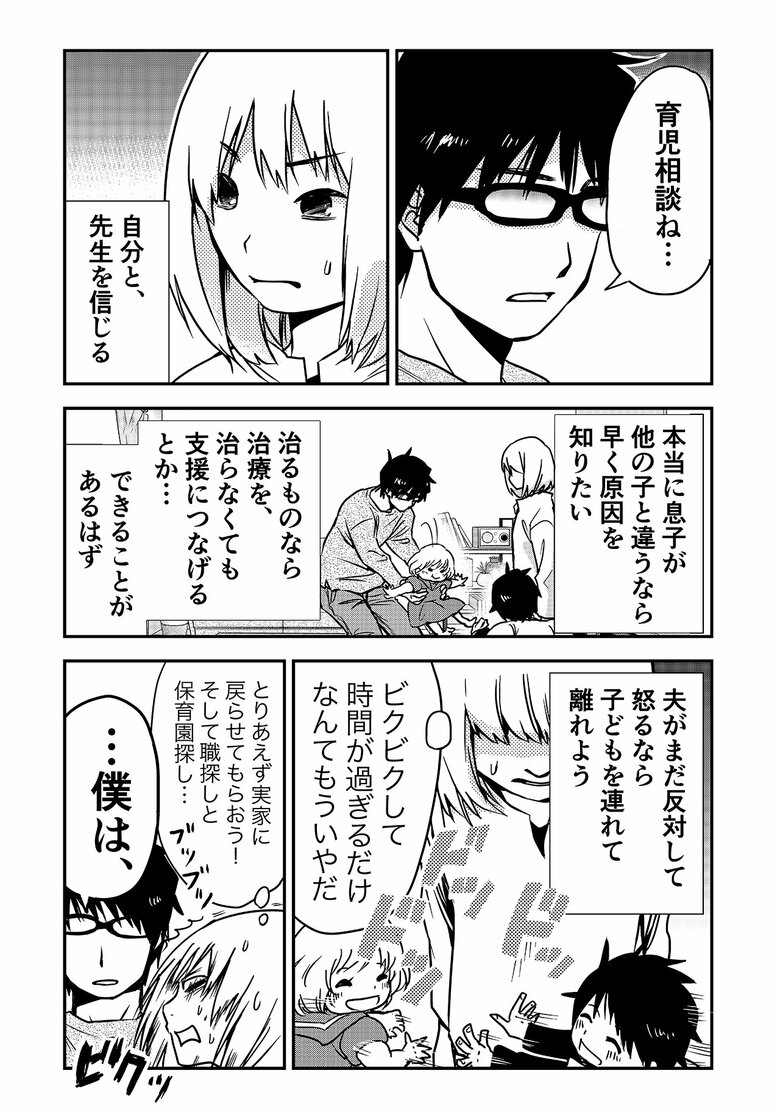 そして息子くんは4歳になり、年中に進級。そんななか、担任の先生との面談での指摘で、自分の不安を「初めてわかってくれる人がいた!」と心強く感じた愛田さん。勇気を出して「育児相談に行こうと思う」と夫に伝えたところ──。