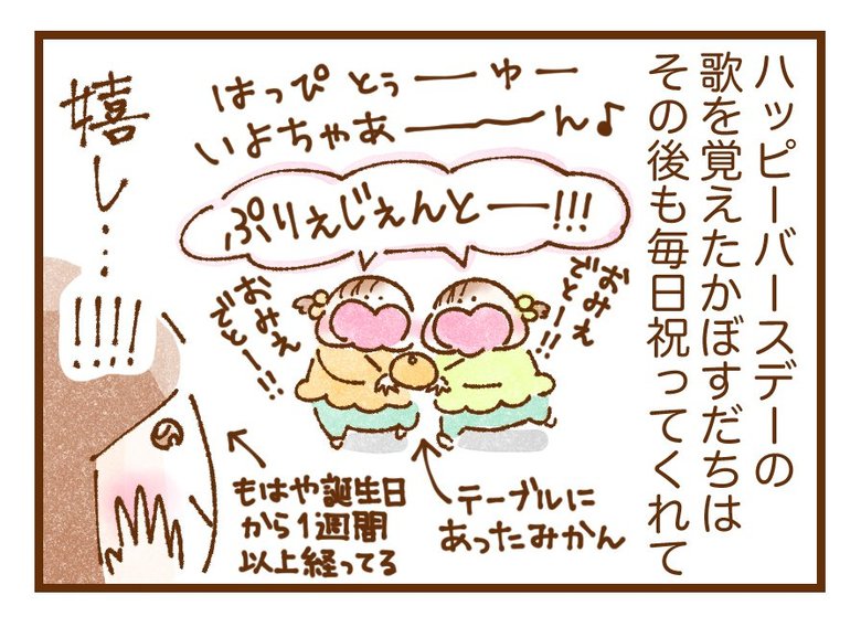 いよかんさん:2人で楽しそうに遊んだり、お喋りをしているのを見ると「双子でよかったなあ~」ってすごく思います。いつも2人で楽しそうに笑っているので、私も賑やかな感じを楽しんでいます。