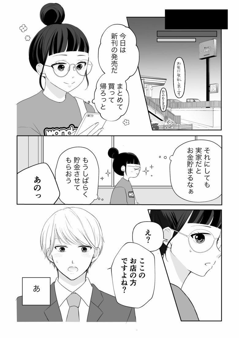 バイト終わりに外に出ると、そこにはランチタイムに優しい言葉をかけてくれたイケメンが。忘れ物の問い合わせだけだと思い、対応して去ろうとする実咲に「連絡先を教えてください」とまさかの声がけが!男性は26歳と年下であることがわかりました。