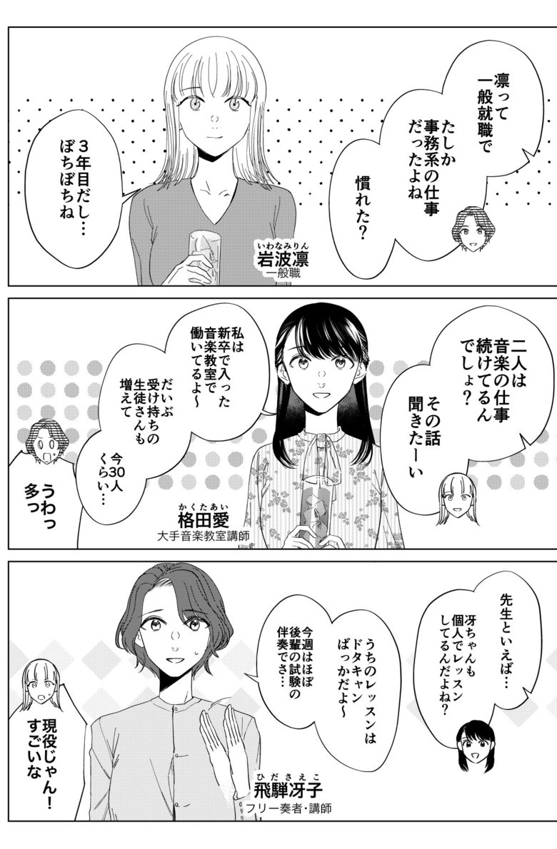 音大卒のイメージは華やかで、お金持ちで、将来は好きなことを仕事にできる…煌びやかな世界と思われがちな、音大卒女子たちの日常を実際に音大を卒業した漫画家・輪立さくが描きます!