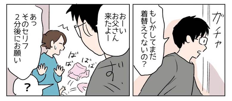 「お父さんがきたとき、今日はもうお着替えできてまーすって出てきたら面白くない?」