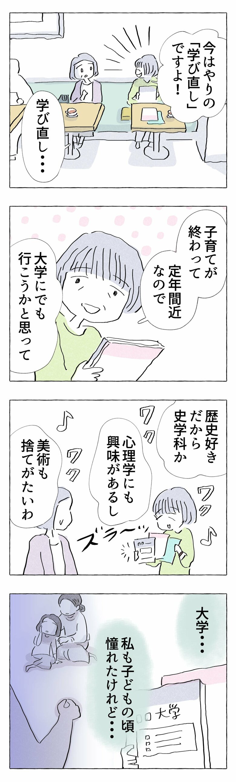 子育てが終わって定年間近。自分と似た状況だと思いながらも彼女と同じように一歩踏み出すことができない…。