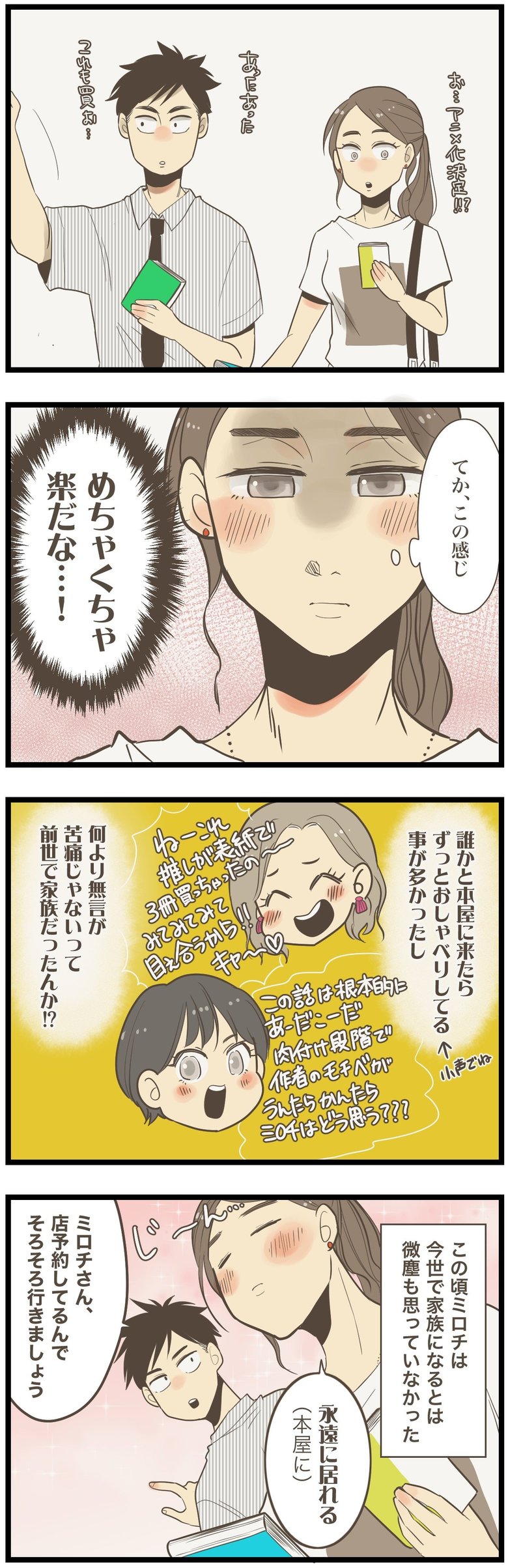 連載トップへ戻る 10歳下男子と2人きりなのに「めちゃくちゃ楽だな…!」 ミロチ 4コマ・漫画 2023.06.03 元婚約者に捨てられたミロチさんが出会ったのは、天然記念物並みにピュアで真面目な10歳年下の夫だった! ふたりの行く手には山あり谷あり…。でも、ふたりなら乗り越えられない壁はない。Instagramで大人気のミロチさんが自身の経験を描くウェディングストーリーです! 漫画を読む 第18話 10歳下男子と2人きりなのに「めちゃくちゃ楽だな…!」 作/ミロチ この記事の写真をすべて見る(4枚)