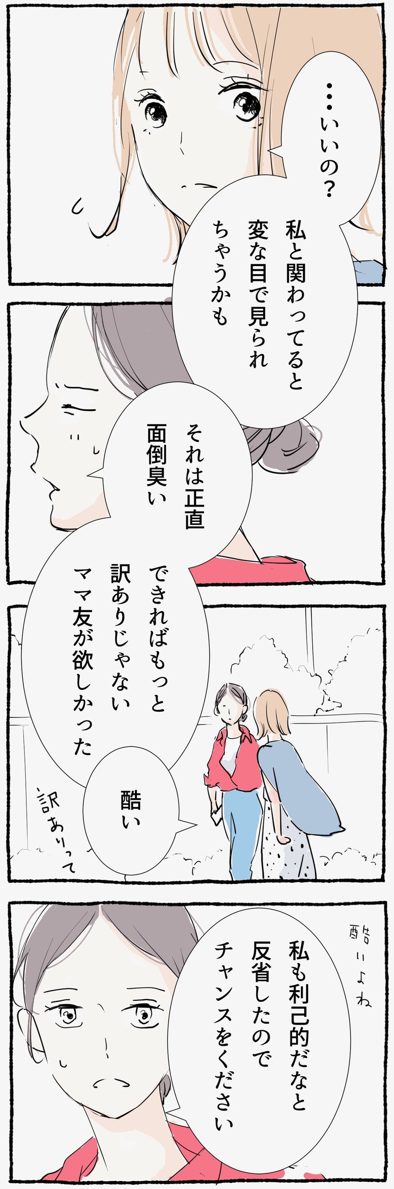 連載トップへ戻る 少しだけわかり合えた私と彼女「連絡先、交換してください」 なかのいと 4コマ・漫画 2023.06.08 子育て中の駆け出しイラストレーター、寧々。 新しく受けた仕事をきっかけに、夫と子ども、親や友達…身近な人たちとの関わり方について考えます。ひとづきあいの練習…その先に見えたものとは? 作者・なかのいとさんが日々の生活で感じた思いを描いた作品です。 漫画を読む 第28話 少しだけわかり合えた私と彼女「連絡先、交換してください」 作/なかのいと この記事の写真をすべて見る(4枚)