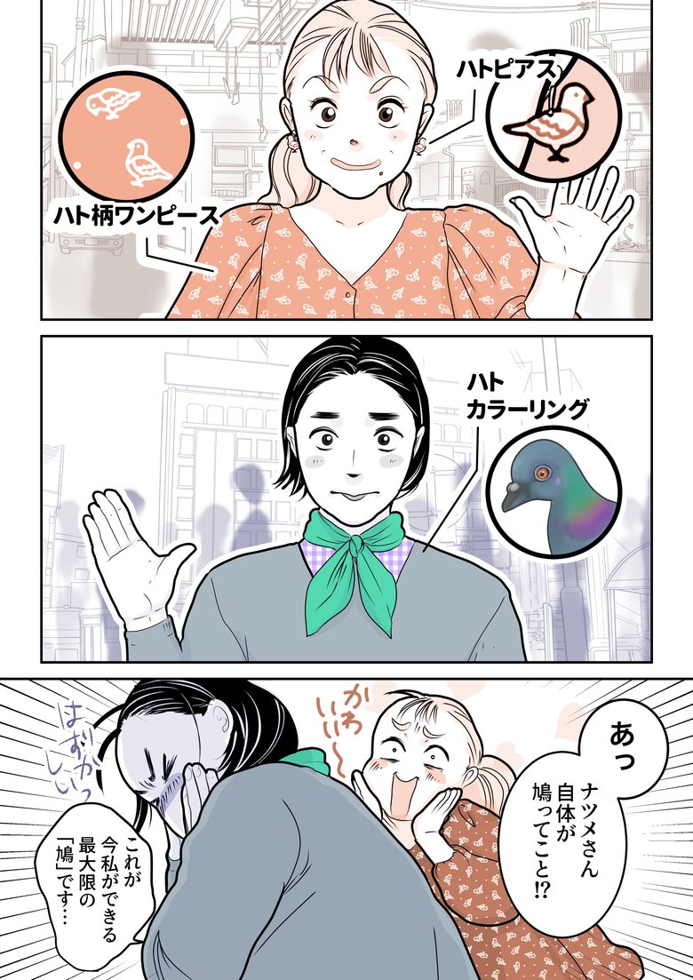 しかし、聞こえてきた会話からお目当ての鳩グッズが既に完売していると知りなんとも言えない表情で見つめ合う二人なのでした。