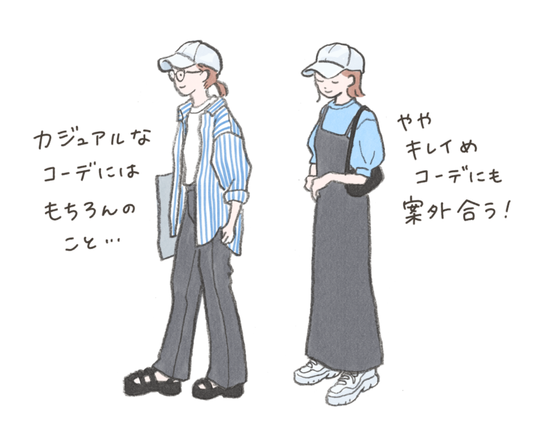 またさまざまな服のスタイルに合わせやすいと感じており、だからこそ私はキャップを取り入れたいと思っていたのです。