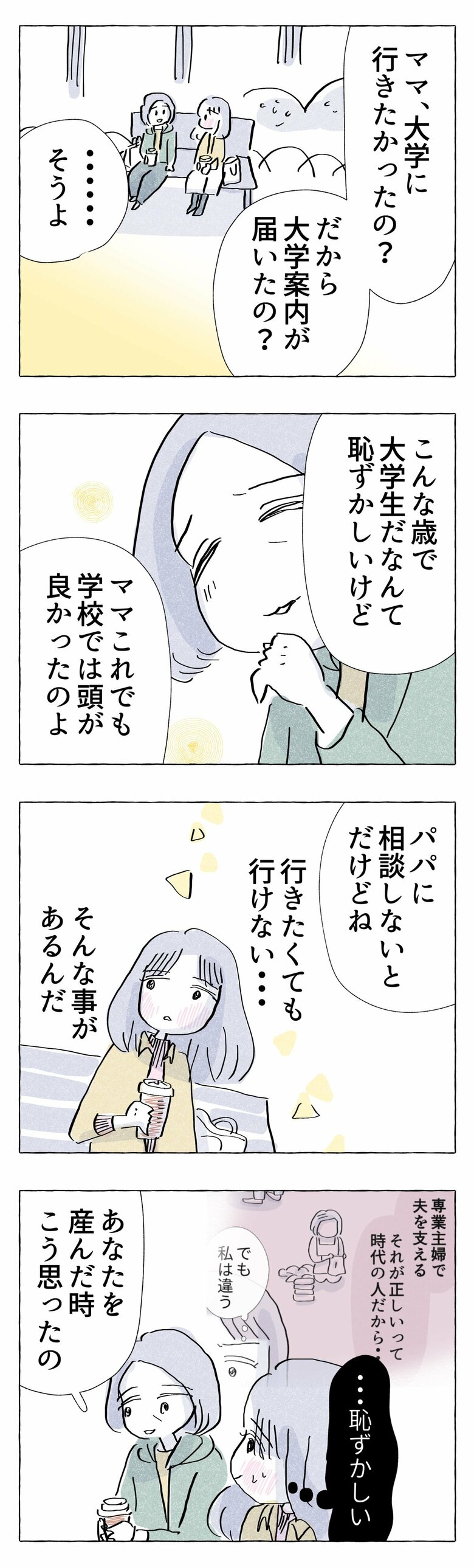 これまでを振り返りながら、母は娘の前でそうつぶやくのでした。