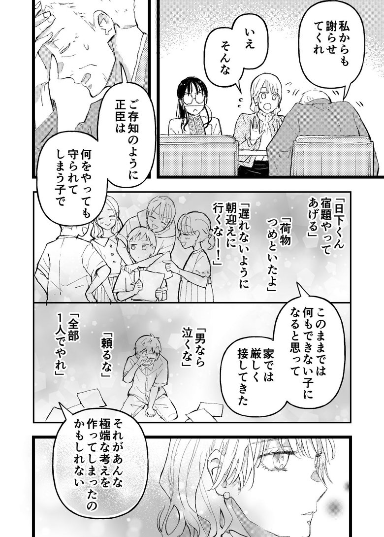 日下さんが子どものころから、祖父から「泣くな」「頼るな」と厳しくされてきたことを知った宮森さん。「強くなるまで待って」という彼の言葉にはどんな気持ちが込められていたのだろうと、思いをはせるのでした。