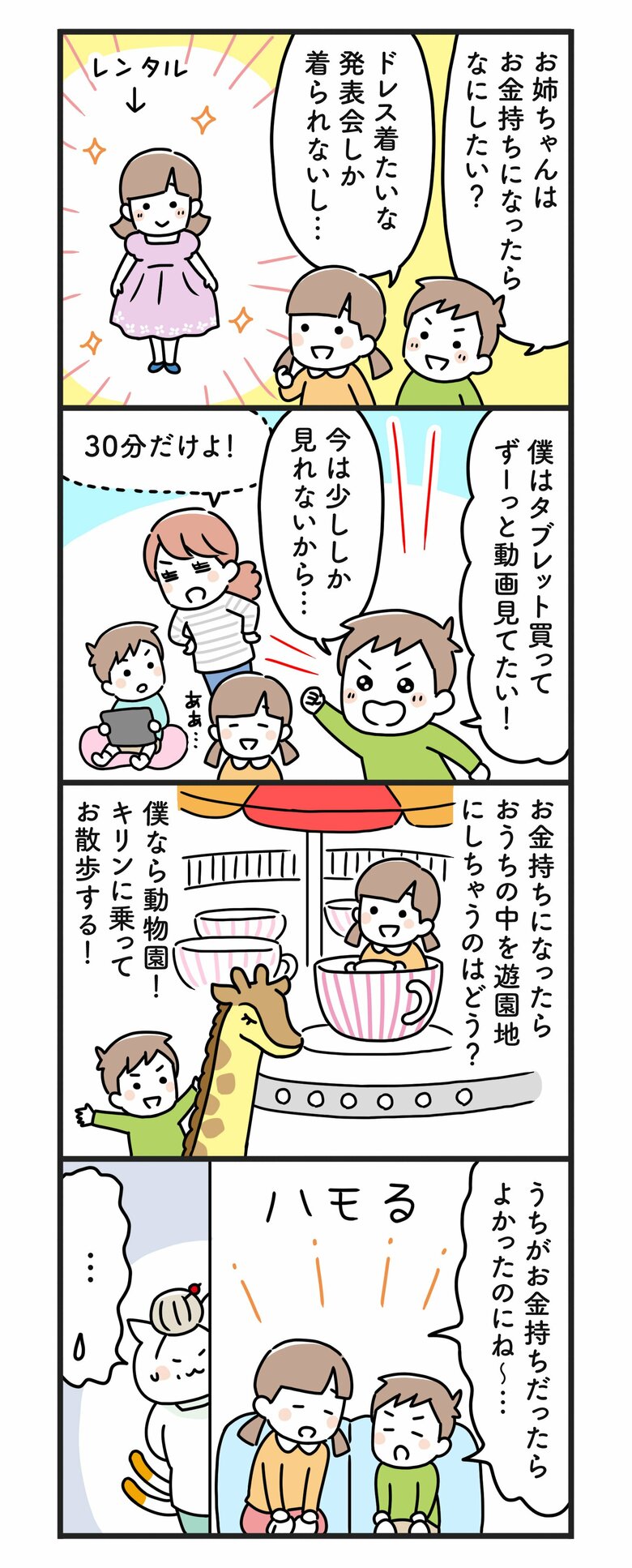 「もしお金持ちになったら…」と想像を膨らませる子どもたち。現実に引き戻されて「お金持ちに生まれたかったな」とため息をつくふたりに、ウメコがある言葉をかけたところ、思わぬ展開に──!?