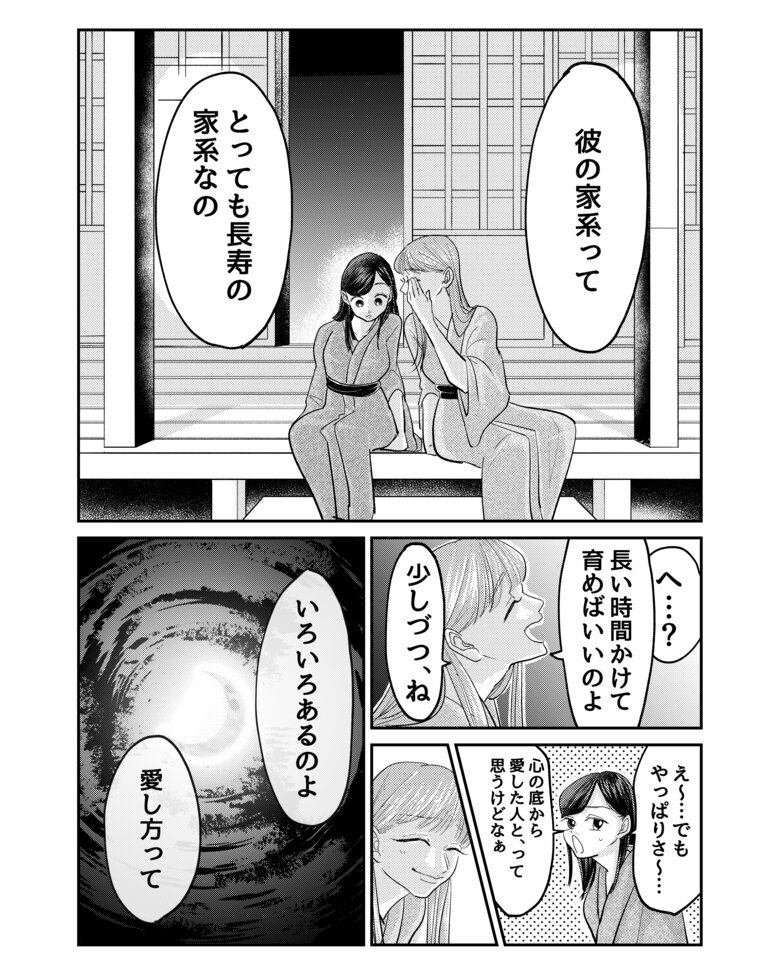 「いろいろあるのよ、愛し方って」鈴にそう言った里の表情はとても晴れやか。長い時間をかけて愛を育もうとする里の生き方に、鈴は「結婚」を強く意識するようになるのでした。