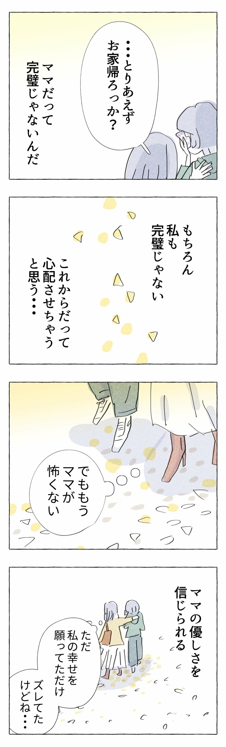 離れていた期間があったからこそ、そのことに気づけた娘。今なら母のやさしさを信じられる。溺れそうになっていた私はもういない。もちろん私を苦しめていた“完璧な母”も。