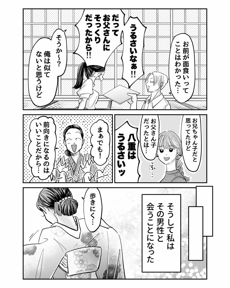 鈴がお見合いすることに決めたのは、写真が「おとうさんに似てる気がしたから」。周囲のさまざまな反応を受けながら、鈴は晴れ着に着替え、一歩を踏み出します。