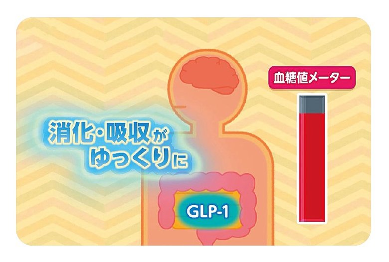 たんぱく質を先に食べると、「GLP–1」というホルモンが分泌されます。消化吸収がゆっくりになり、血糖値の上昇も緩やかに。満腹中枢を刺激し、食べすぎ防止にもつながります。