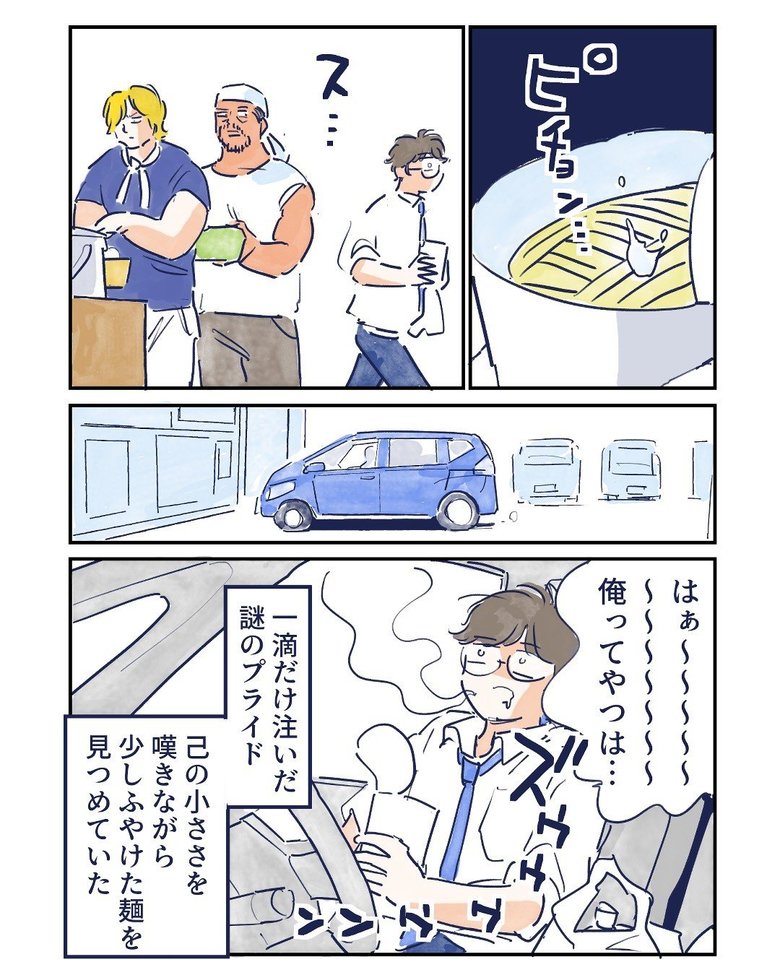 その日は買ったカップ麺を片手に、コンビニのポットのお湯の残量もしっかり確認していたグッドスリープさん。「ギリ二人分ぐらいはあるな…」と安堵したのも束の間、後ろにはビッグサイズのカップ麺を手に持った屈強なお兄さんたちが…戸惑ったグッドスリープさんは1滴だけ注ぎ途方にくれたのでした。