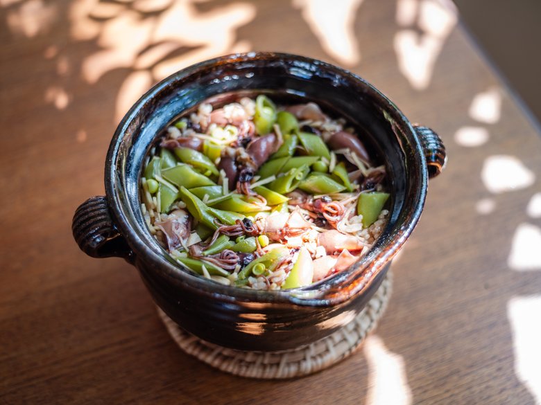 #38 春の終わりに「ホタルイカとスナップエンドウの炊き込みご飯」