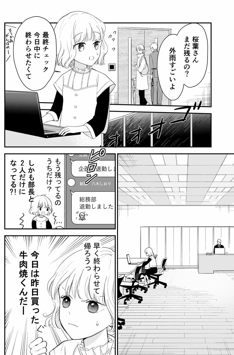 もっとふんわり生きたいし、同時進行はひとつまで(同時進行できていない)と思うはるなは、自分の世界平和のためにも、部長とは最低限の接触でやっていくことを日々、心がけています。ところが、よりによってその右京とふたりきりのオフィスで、予期せぬ停電が発生!