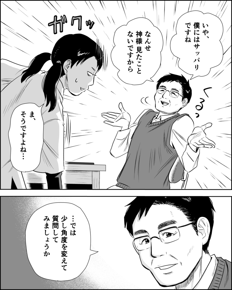自閉スペクトラム症・中度知的障害を持つ4歳の娘と発達支援センターを訪れた母・あやこさん。面談のなかであやこさんが語った「障害児のママは神様に選ばれた」という言葉について、保育士の花田さんが相談支援専門員の茂木さんに質問を投げかけます。