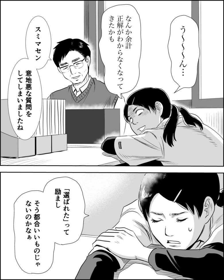 周囲の言葉にいつも卑屈になってしまうあやこさん。しかし本当は、周囲の励ましの気持ちが素直に受け取れない自分のことがいちばん嫌なのでした。