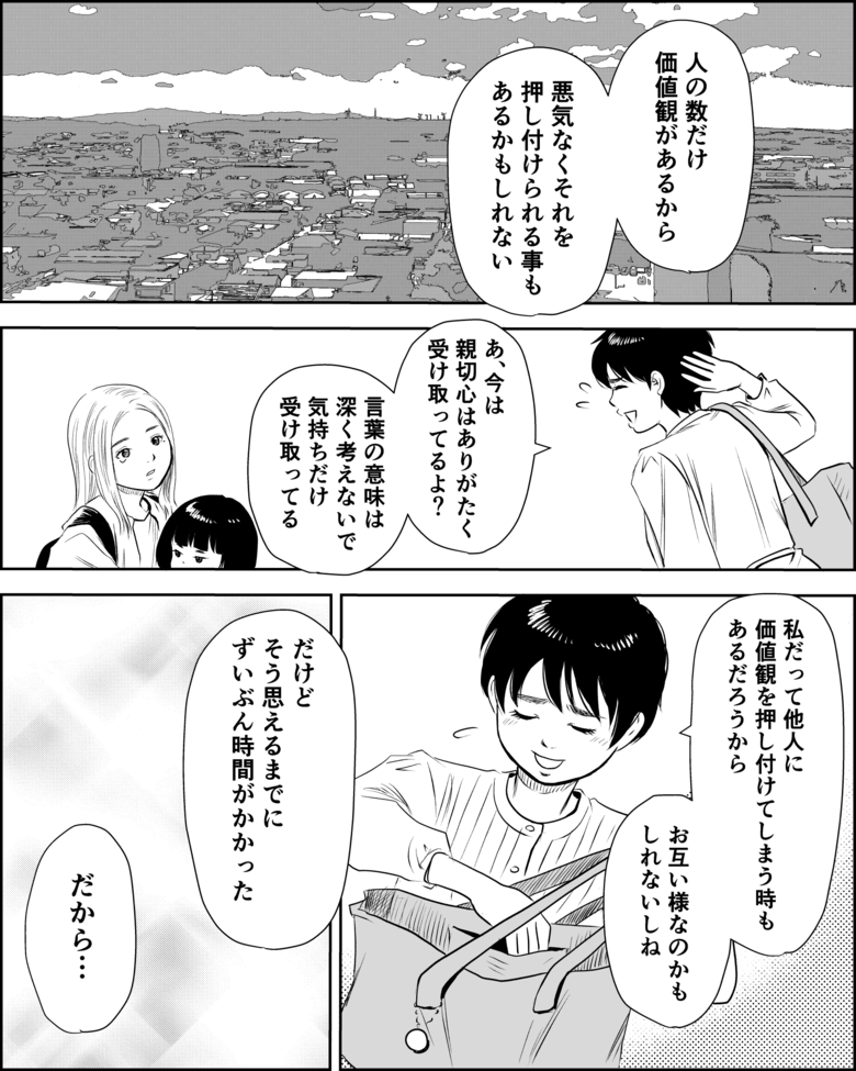救いを求めて匿名掲示板で悩みを吐露したあやこさんでしたが、ここでも返させる言葉は一方的な励ましばかり。「個性を認めてあげて」「神様からのギフト」「神様は乗り越えられない試練は与えません」。いくらポジティブな言葉で溢れているとはいえ、共感がないのは孤独な世界です。