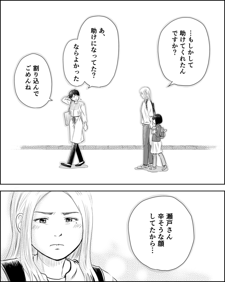 しかしリアルの世界で意外な人物があやこさんを救ってくれます。自分より余裕があって、「一緒にしてほしくない」と感じた自閉症児をもつ母親。神様から選ばれたと言われるたびににわが子を愛しきれていないのかと葛藤していたあやこさんに、当たり前に子どもが日々を過ごせていることのすごさを説いてくれたのです。