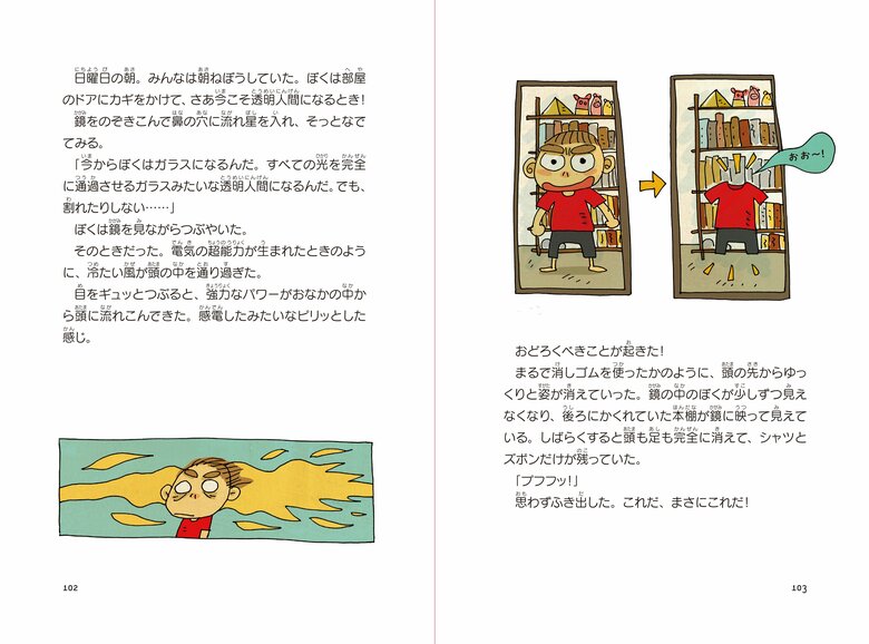 本書の主人公は、小学4年生のガク。学校の成績はイマイチだけれど、好奇心が旺盛で、いつも先生を困らせるクラスの笑われ者です。ある日、落ちてきた流れ星がきっかけで不思議な力に目覚めるのですが、確実に超能力を手に入れるためには、科学の知識を身につけなければなりませんでした。