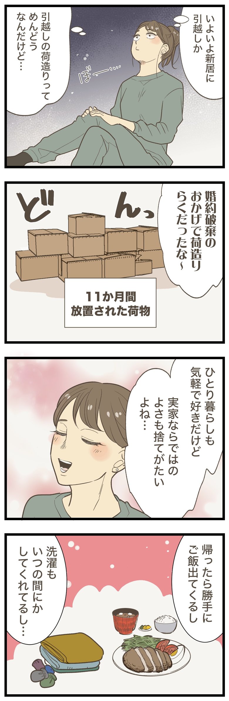 約1年前に経験した別の男性との婚約破棄のときから荷解きしていない荷物があり、今回は荷造りがらくだったなぁと振り返ります。