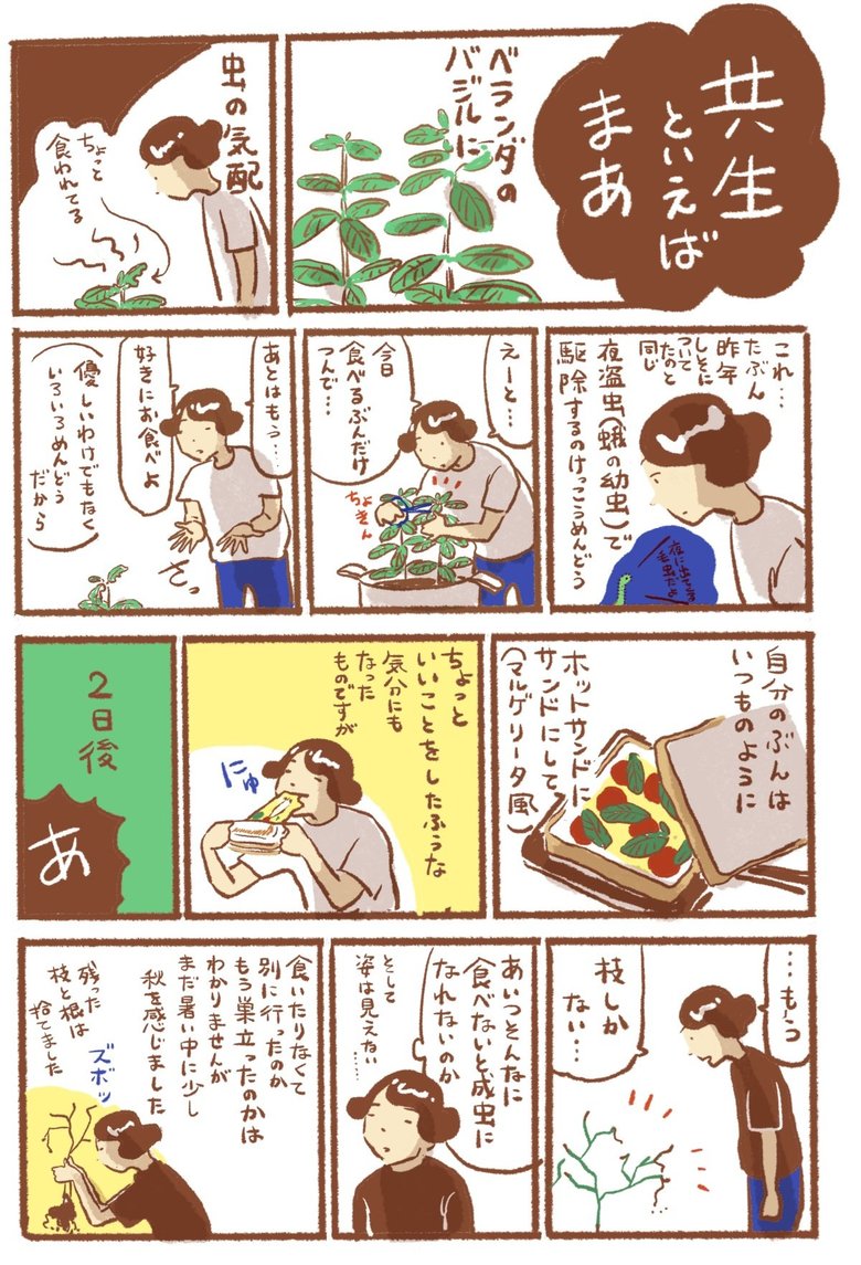 マンションのベランダに置いた植物を律儀に食べにやってくる虫に、いつも感心しています。