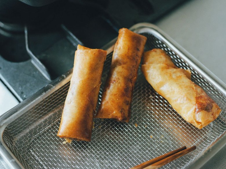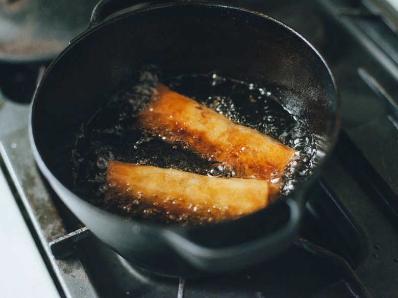 揚げ油を用意して、春巻きを入れて、上下を返しながら、4~5分ほど揚げる。