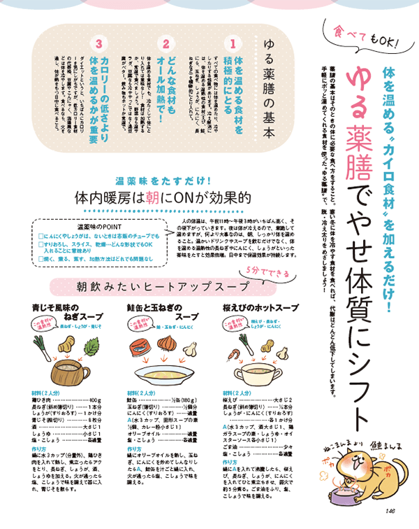 冬太りを解消したい! と思っても、寒さが身にしみるこの季節、ハードな運動や食事制限はちょっとつらい…。そこで、冷えを改善して代謝をアップすることで、自然とゆる~くやせる秘訣をご紹介します。薬膳や代謝上げのスペシャリストがお手軽な方法を指南。なんと体温を1度上げれば代謝はそれだけで12%もアップするとか!ダイエットの鍵は冷え改善だったのです。詳しくはCHANTO2月号をご覧ください。【CHANTO2月号のチラ見せ記事はこちら】