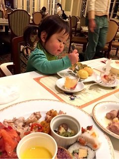 ディナーは時間制限がないので、のんびり…という訳にはいかず…子供達は飽きてしまいゆっくり食べられないのがママ達の悩みすると、スタッフの方から…子供達にプレゼント!!