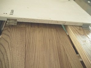 これが扉の部分になります。この板材を蝶番でカラーボックスに固定していきます。