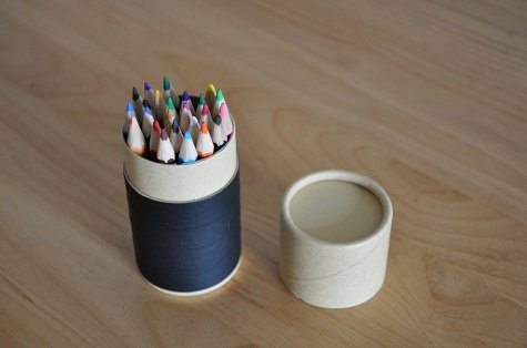 娘の色鉛筆クラフトの筒に入っていてシンプルなのが気に入っています。商品ラベルが上手く剥がせなかったので、またまた黒マスキングテープでぐるぐる巻きました。コンパクトで持ち運びにも向いています。