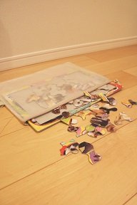 子どもってパズル好きですが、作りきれずに飽きてしまうことも多々。娘がパズルを遊び始めた頃は、パズルについてくるビニールケースに戻していたのですが、これだとパズルを完成していないと仕舞えないという誤算が・・・パズルを子どもの代わりに完成させるのも辛くなってきた時に、使い始めたのが、ソフトビニールケース(B4サイズ)。そのまま、入れられるので、サッと片づけられるようになりました。ジップを開けられるようになったら、子どもだけでもしまえるようになりますよ。
