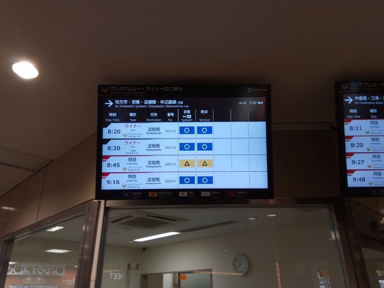 豊中駅周辺に住んでいる場合は豊中駅始発電車に乗ると着席できる確率が大幅にあがります。また、蛍池駅や石橋駅から豊中駅まで行き、豊中駅で始発電車に乗るのもアリですね。阪急電鉄のホームページにある豊中駅の時刻表を見ると「当駅始発」の表示が。これらの電車を狙いましょう。