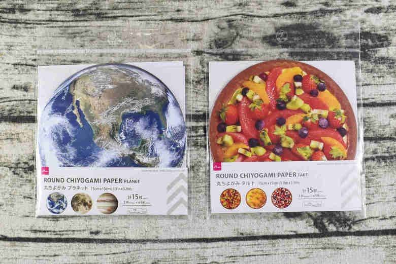 丸型のかわいいちよがみがあったら、遊びの幅が広がると思いませんか? そこで今回はダイソーで購入してきた、「丸ちよがみ プラネット」と「丸ちよがみ タルト」の2種類をピックアップ。丸い形でかわいいデザインのちよがみです。さっそくちよがみのデザインをひとつひとつ見ていきましょう。
