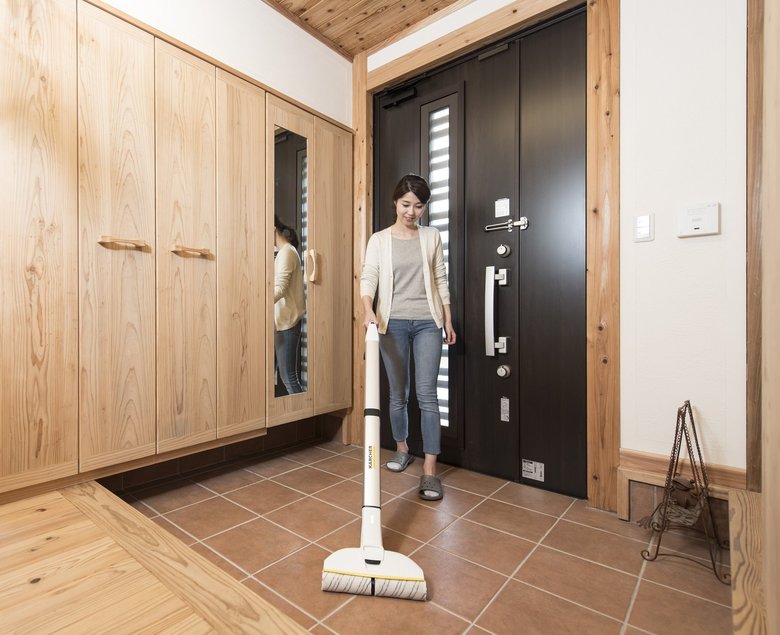 「立ったまま楽に水拭き」できるのもポイントのひとつ。膝をついたり屈んだりすることなく掃除ができます。部屋の端まで届くローラーと左右に倒せるスティックで、壁際や家具の下など狭いところも掃除可能に。使う人の目線に立った「FC 3d」を使用すれば、お掃除がより快適になりそうですね。