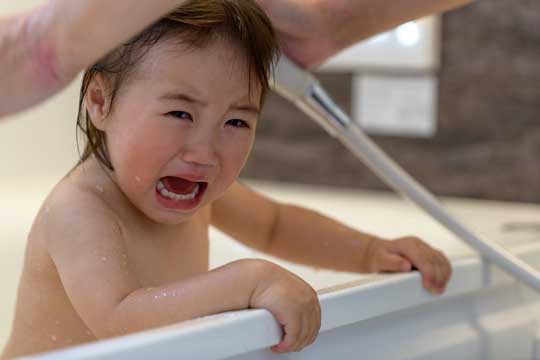「膝に乗せて洗うのも、3歳近くなってくると無理」 「シャンプーハットでも怖がる」 「下を向いてシャワーや湯桶でお湯をかけるのがどうしてもダメ、息ができないって言うの」