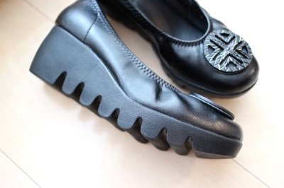 このパンプス、ちょっとビックリするのがソールのデザインです。こんなふうにボコボコしているのです。
